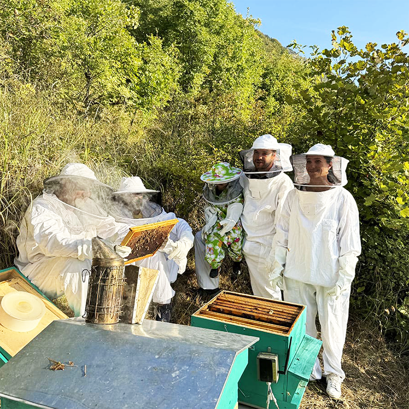Nous avons débuté, pour les plus matinaux, par la visite des ruchers de la Bastille avec un petit déjeuner en pleine nature au-dessus du restaurant et avec bien entendu une dégustation du miel de la Bastille. Bruno GERELLI, ambassadeur et apiculteur, nous a expliqué en détail le fonctionnement des ruches et la vie des nos petites butineuses. Certains d’entre nous se sont même improvisés apiculteurs, enfilés les combinaisons de protections pour aller taquiner nos petites abeilles.
